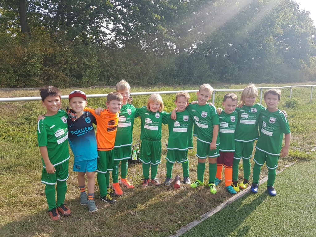 Die F2 sagt Danke für einen neuen Satz Trikots bei der Pension Fröhlich aus Saarmund.